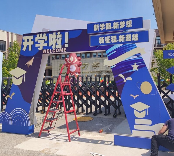 斯宇广告为空港第一学校设计制作开学迎新物料